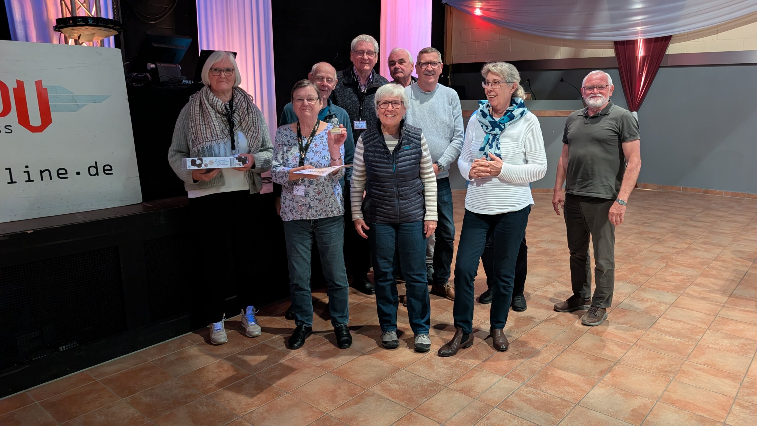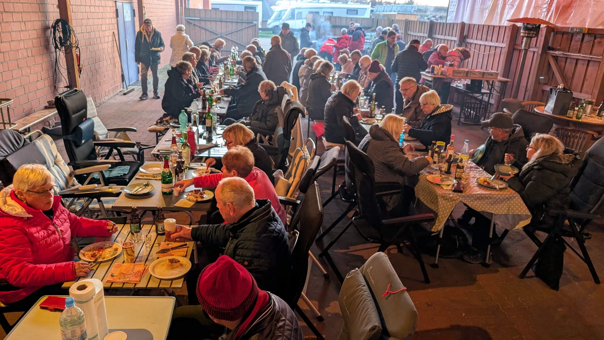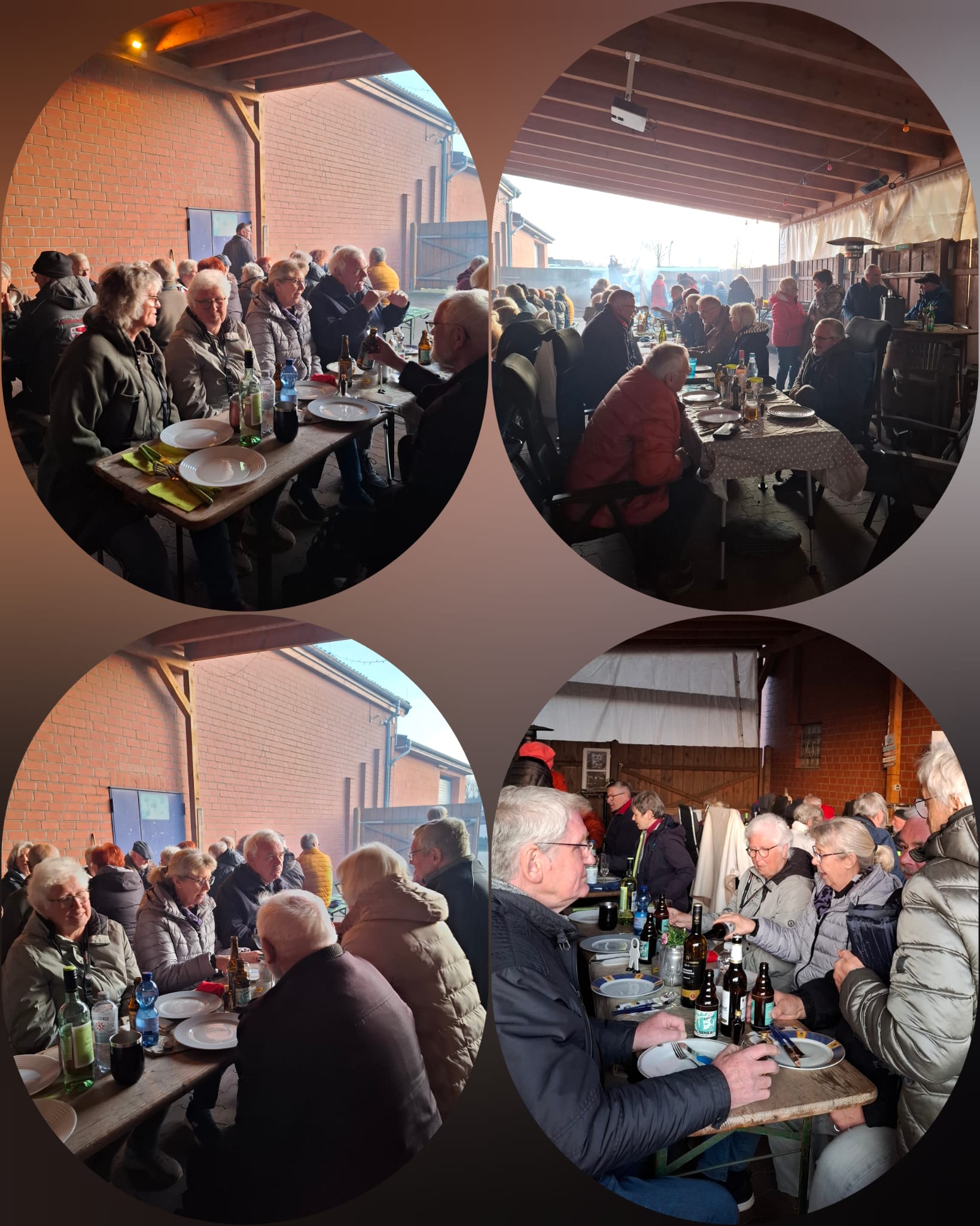 Danach schnappte sich Jochen Henkel das Mikrofon und sprach einen großen Dank an das Organisationsteam aus, was mit einem heftigen Applaus von uns allen bestätigt wurde. Darauf folgten aber auch ermahnende Worte. Wenn zukünftig jedes Jahr ein Grünkohltreffen angeboten werden soll, muss sich jeder mal bereit erklären, ein Treffen zu organisieren. (das schlechte Gewissen klopft bei mir schon an). Ansonsten bleibt immer alles an den Mitgliedern aus dem Vorstand hängen und die setzen sich bereits sehr stark für unseren Freundeskreis ein. Dabei braucht das Programm nicht sehr umfänglich sein und jeder wird unterstützt. Es geht vor allen Dingen darum, nach einer langen Winterzeit mit Freunden eine nette Zeit zu verbringen. Das hat gesessen, denn plötzlich meldeten sich Heike und Rainer Drewes aus Melbeck bei Lüneburg. Sie würden gerne die Grünkohltour 2027 organisieren und anbieten! Ein kollektiver Stein fiel uns vom Herzen, und der Jubel war entsprechend groß.