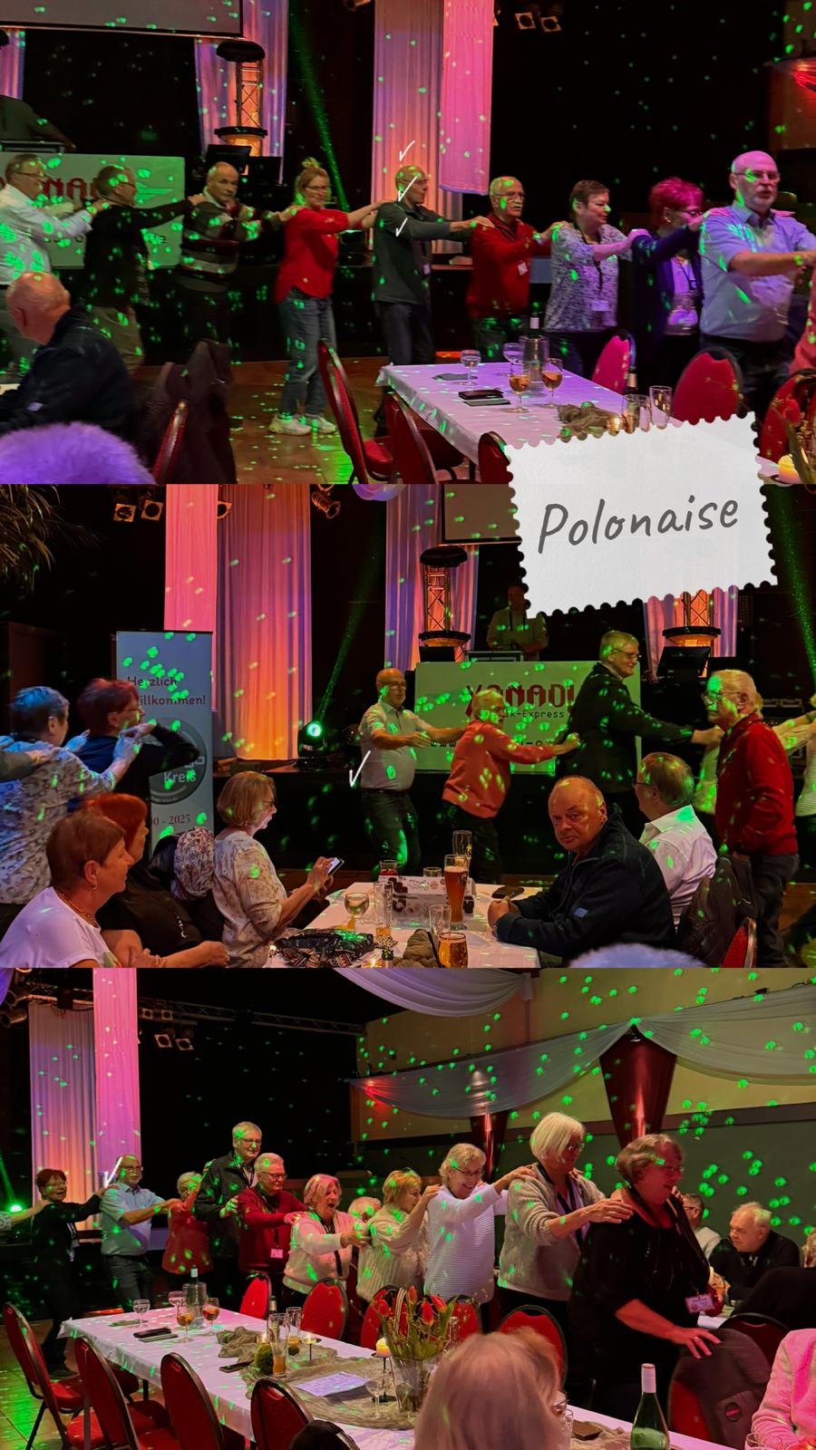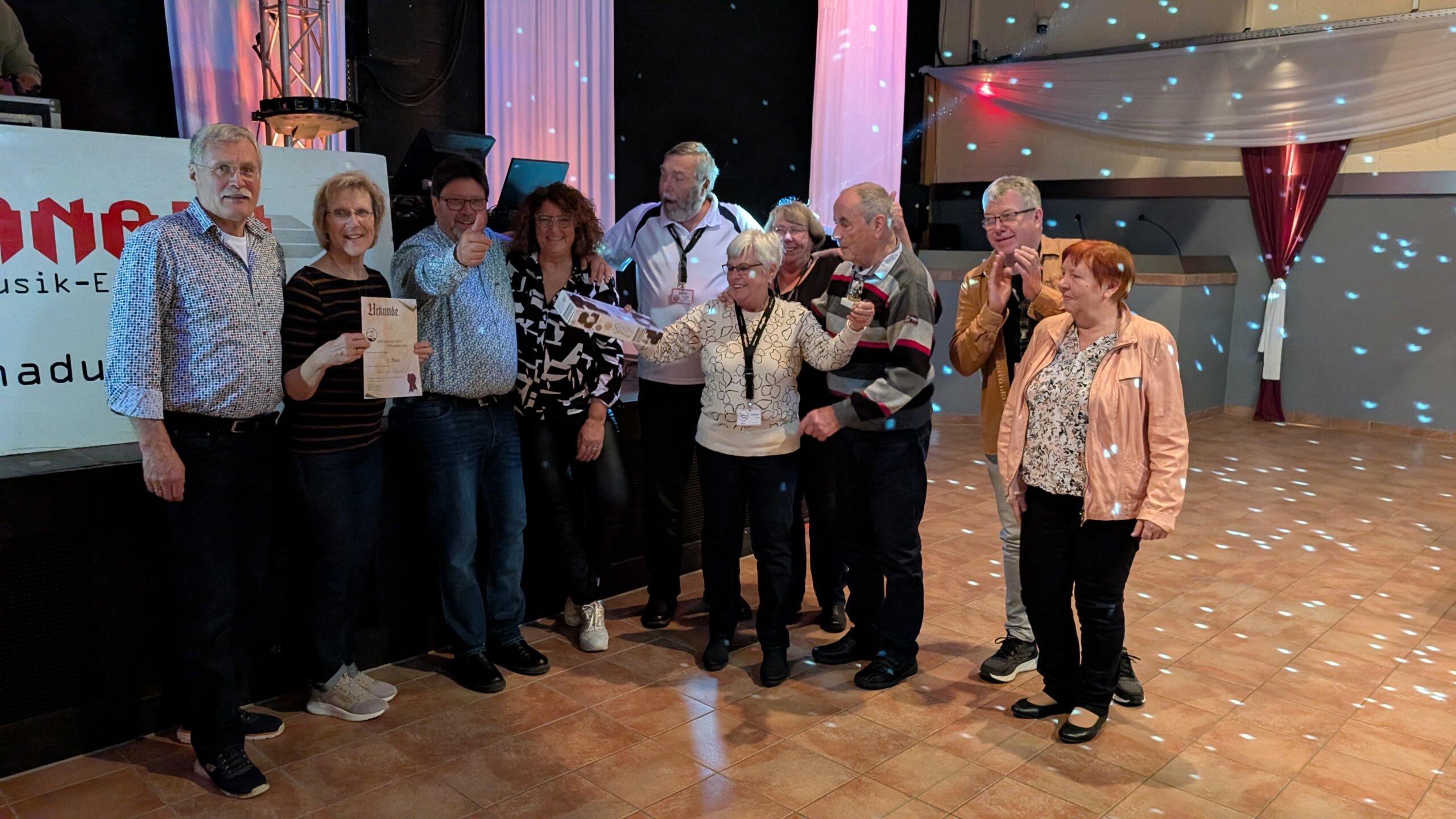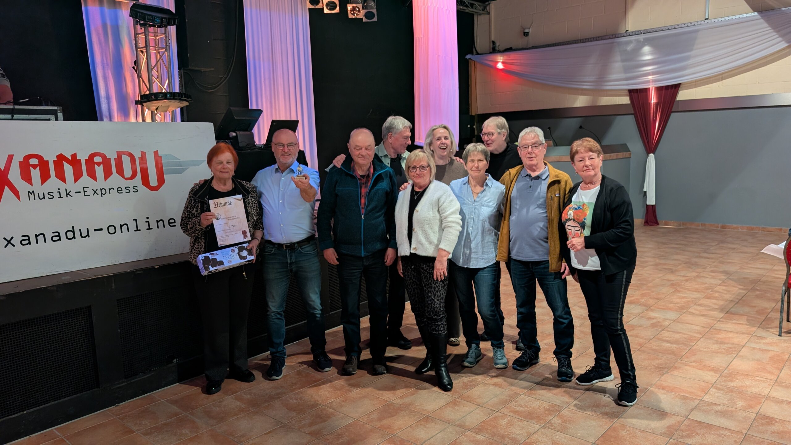 Bevor wir aber alle wieder zu unseren Tischen zurückkehren konnten, rief unser Wirt André zum Tanz auf, was bei einigen Teilnehmerinnen und Teilnehmern zu einer spontanen Wunderheilung führte. Keine Knie- und Rückenschmerzen waren mehr zu spüren und somit bewegten sich alle kräftig zum Takt der Musik. Was für eine grandiose Party!