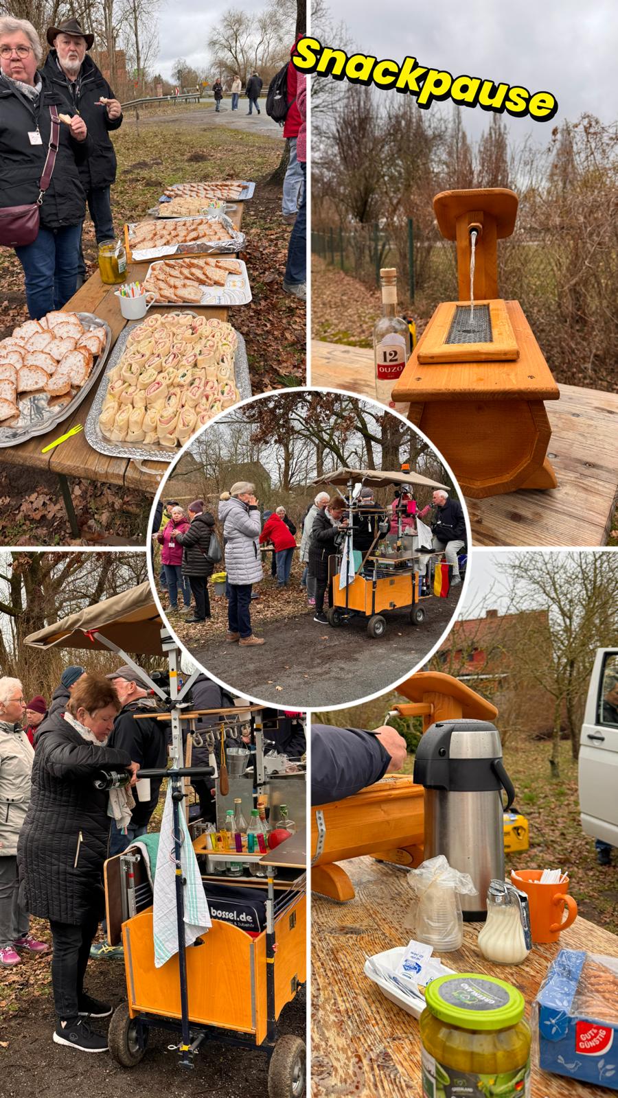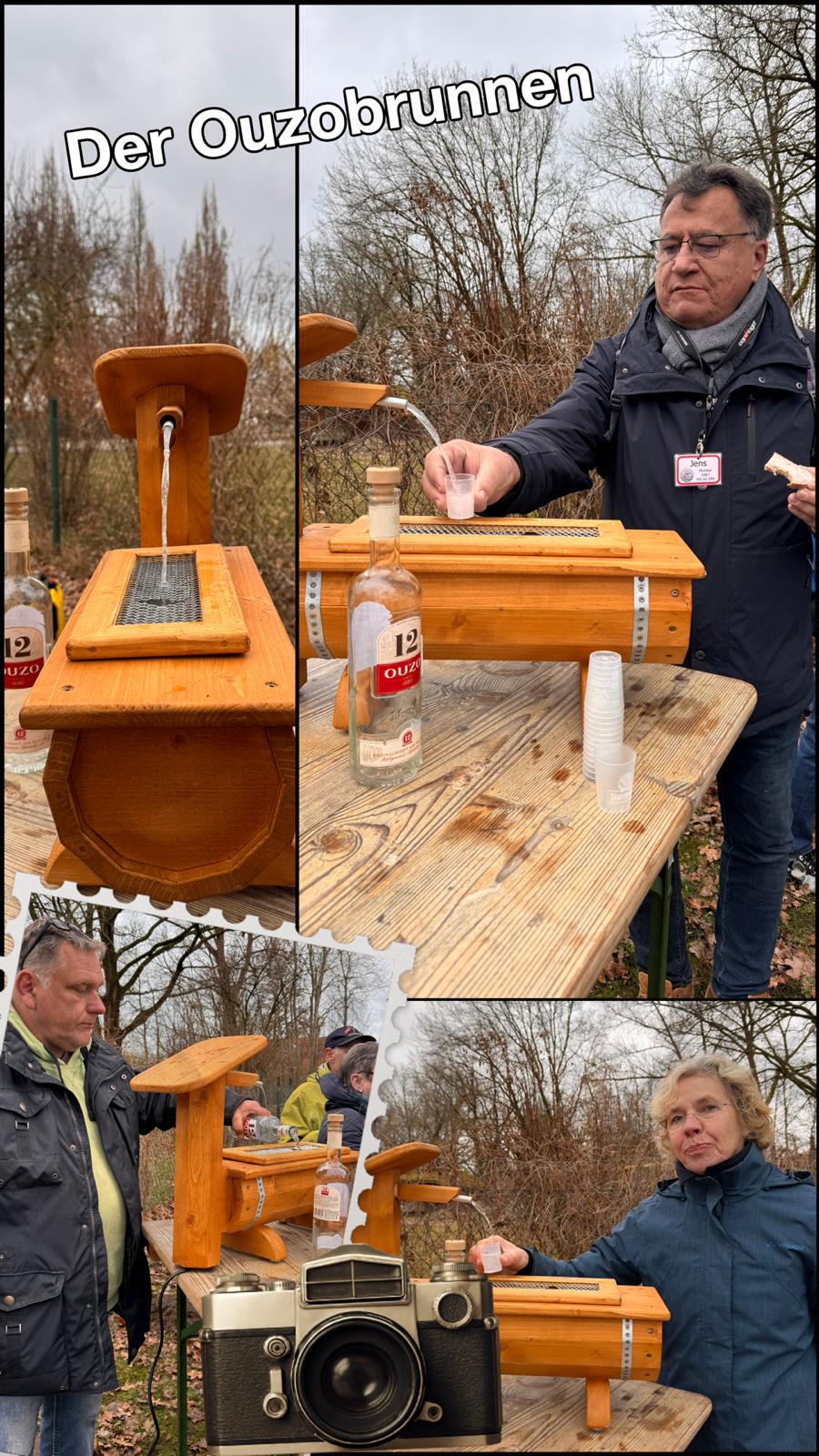 Auf der Mitte unserer Tour erwartete uns ein kleines Buffet aus Griebenschmalzbroten, gefüllten Wraps und diversen flüssigen Schmierstoffen. Sogar ein Ouzo Brunnen sprudelte fleißig sein Gesöff aus. Das Defizit lautet: Schnäpschen rein - glücklich sein. Nun noch die letzten 600 m schaffen, wo wir nochmal richtig Tempo vorlegten und keinen Ball in den Graben schossen! Das ist wirklich nicht selbstverständlich.