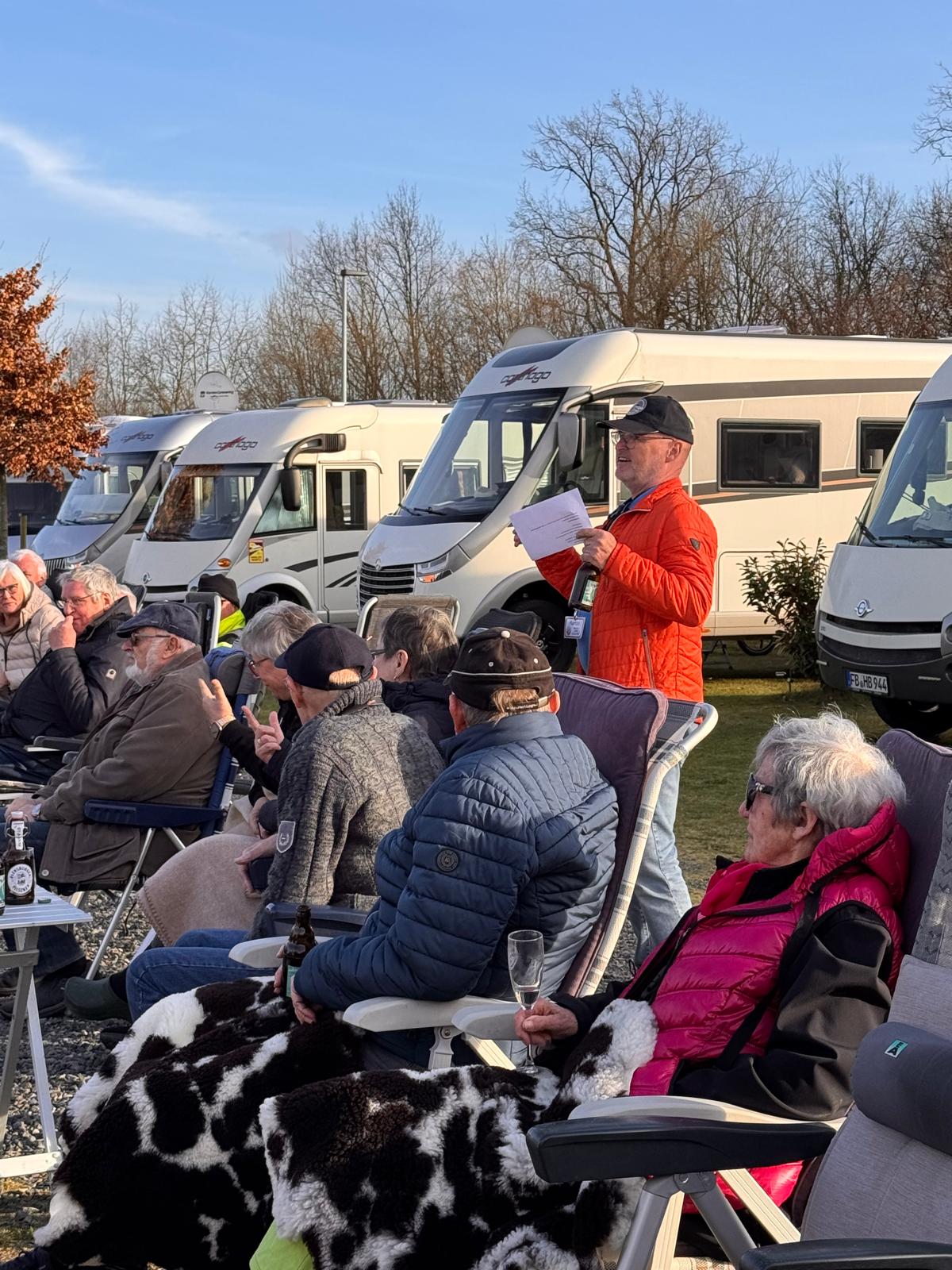 Organisiert wurde das Ganze von Elke und Martin Blömer, tatkräftig unterstützt von Anne und Arno Hoffmann. Insgesamt rollten 33 Wohnmobile an, gefüllt mit 65 gut gelaunten Menschen. Eine beeindruckende Zahl – fast schon ein kleiner Konvoi, der vermutlich sogar von Satelliten erfasst wurde.