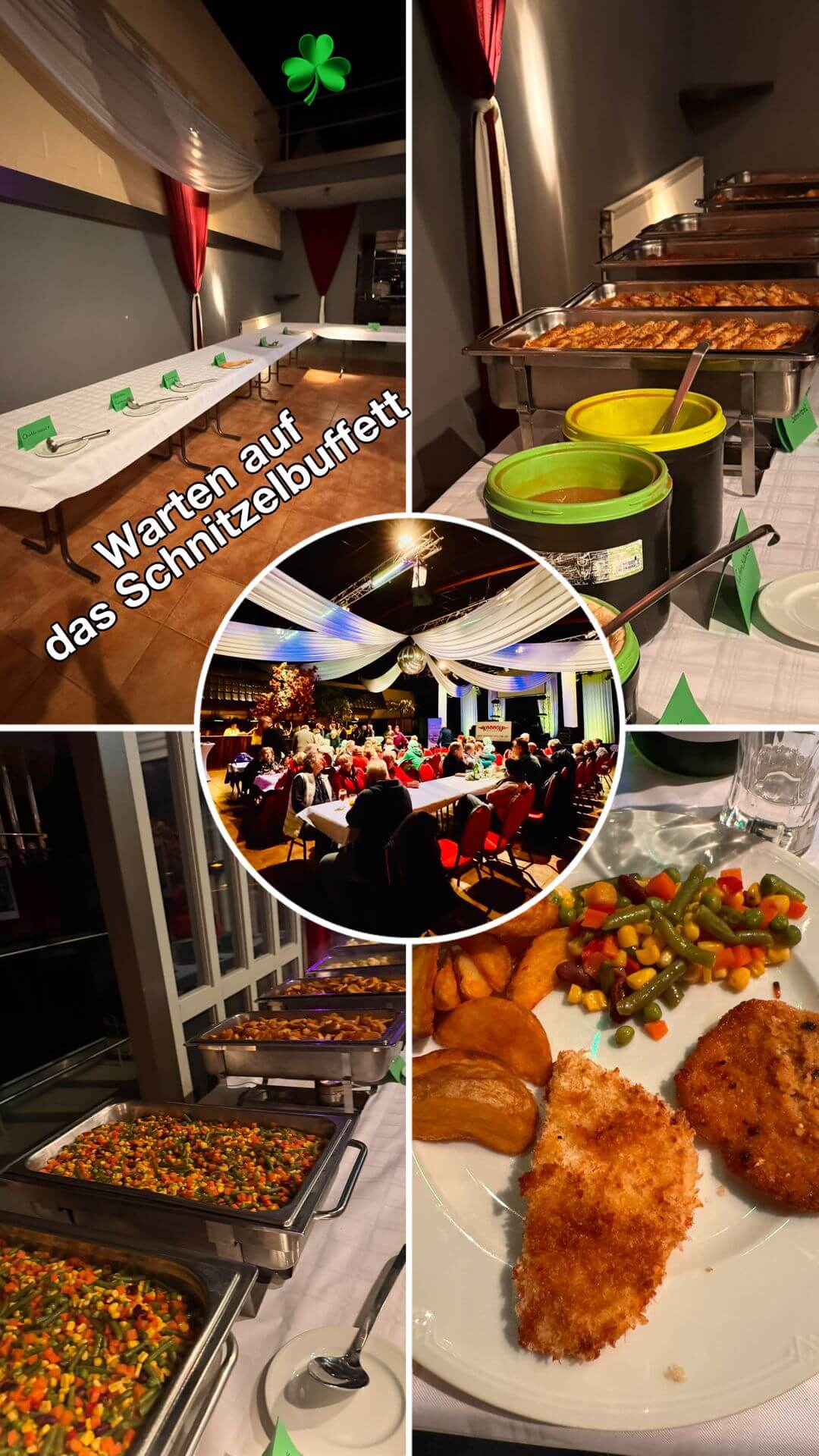 Um 18:00 Uhr ging es ein paar Meter weiter in die Eventhalle zum Schnitzelessen. Ein reichhaltiges Buffet wartete auf uns, begleitet von der notwendigen flüssigen Unterstützung. Ich würde sagen: Wir wurden satt. Sehr satt. Also so satt, dass man sich beim Rückweg zum Wohnmobil fast rollen konnte.