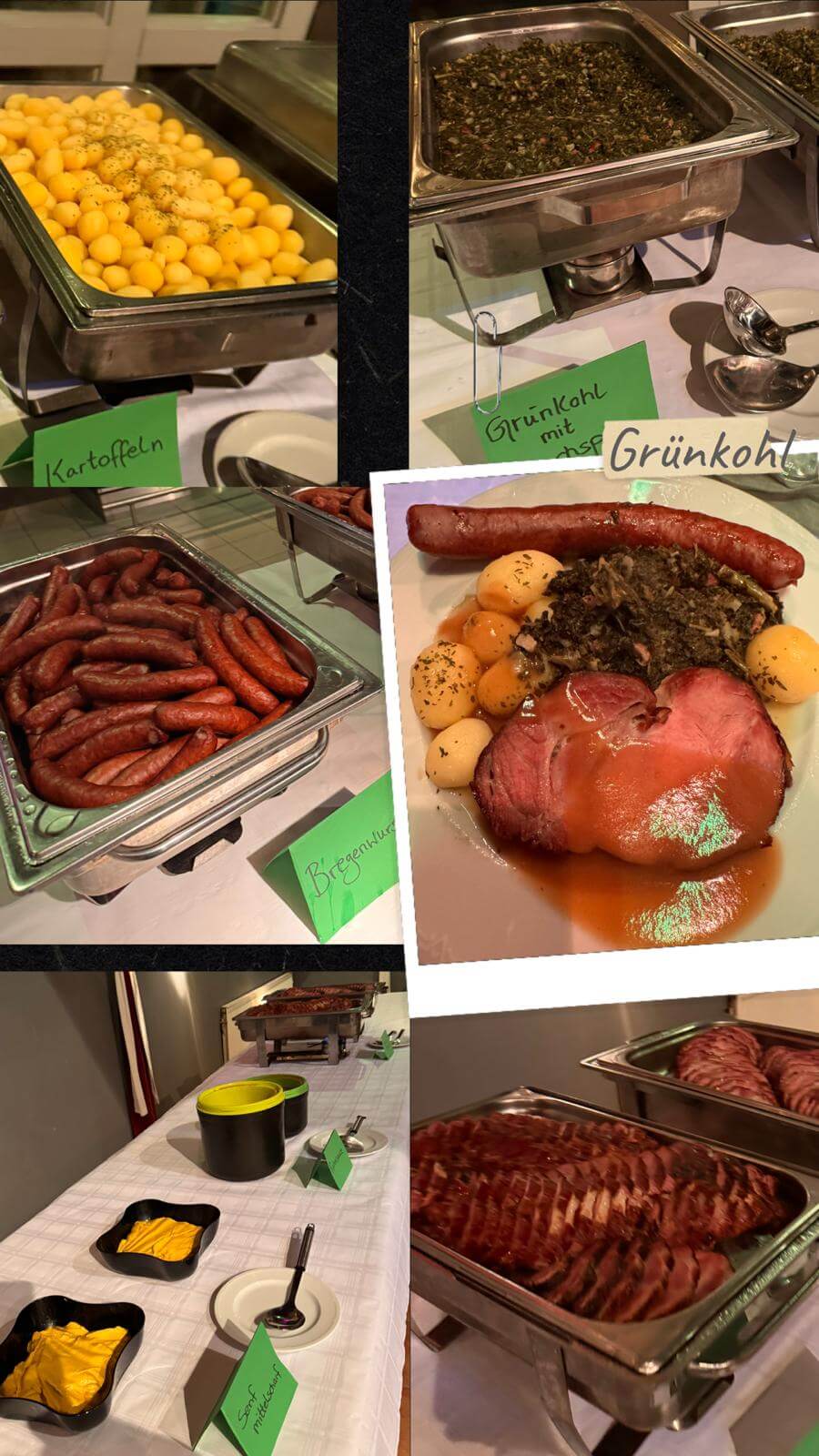 Nach einer kleinen Pause begaben wir uns alle wieder zur Eventhalle, wo das Grünkohlessen stattfand. Man glaubt gar nicht, wieviel verschiedene Zubereitungsarten es beim Grünkohl kochen gibt. Am besten, man stellt keine hohen Erwartungen und das haben wohl die meisten von uns beherzigt. Jedenfalls wurde ordentlich zugelangt.