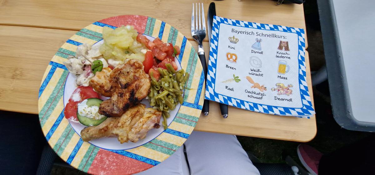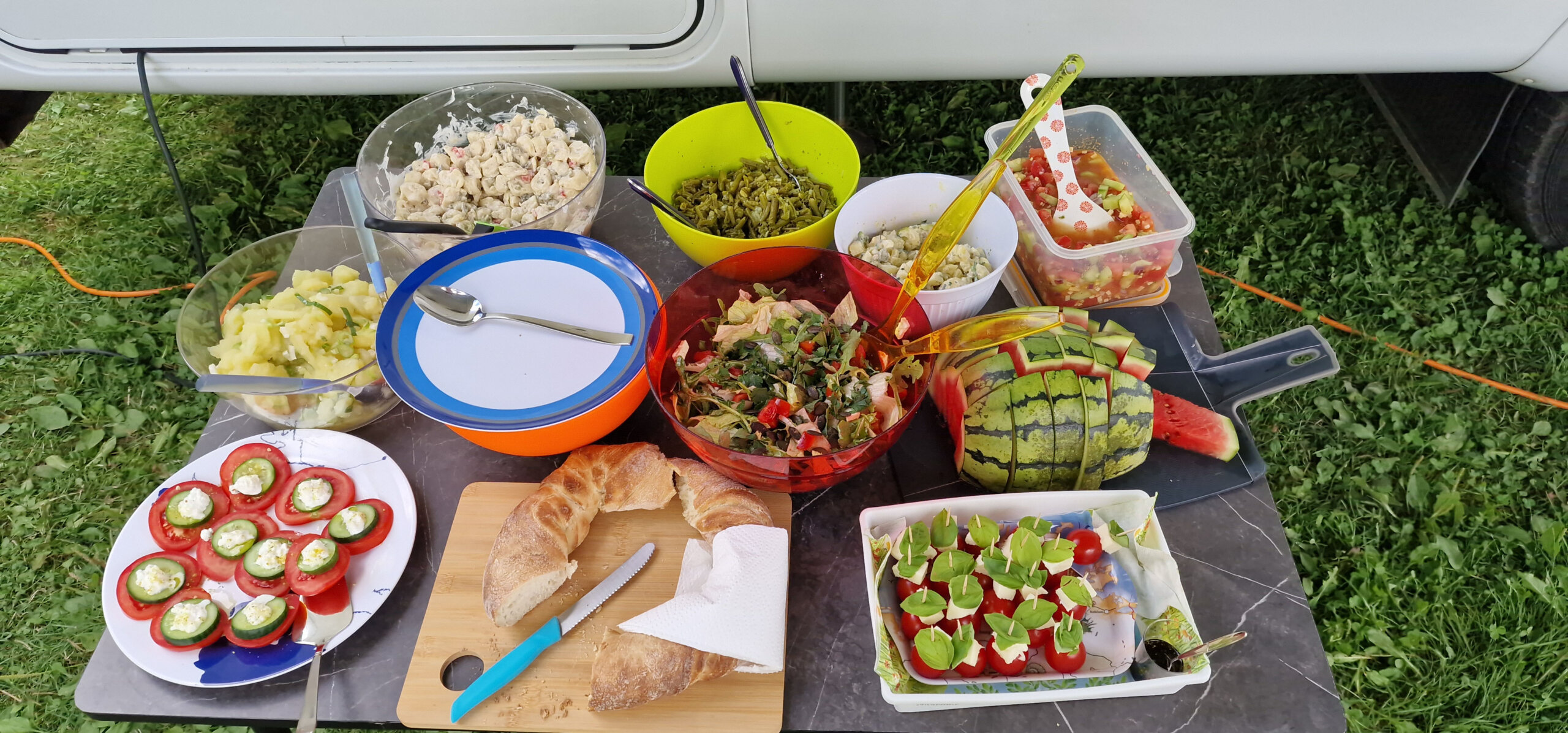 Abends wurde gegrillt - mit einem üppigen Camperbuffet - und gefeiert. Ja, auch ein Tanzkurs wurde angeboten.