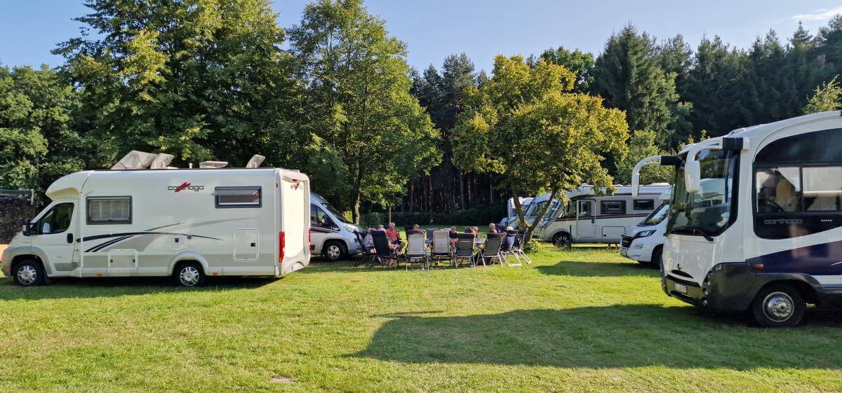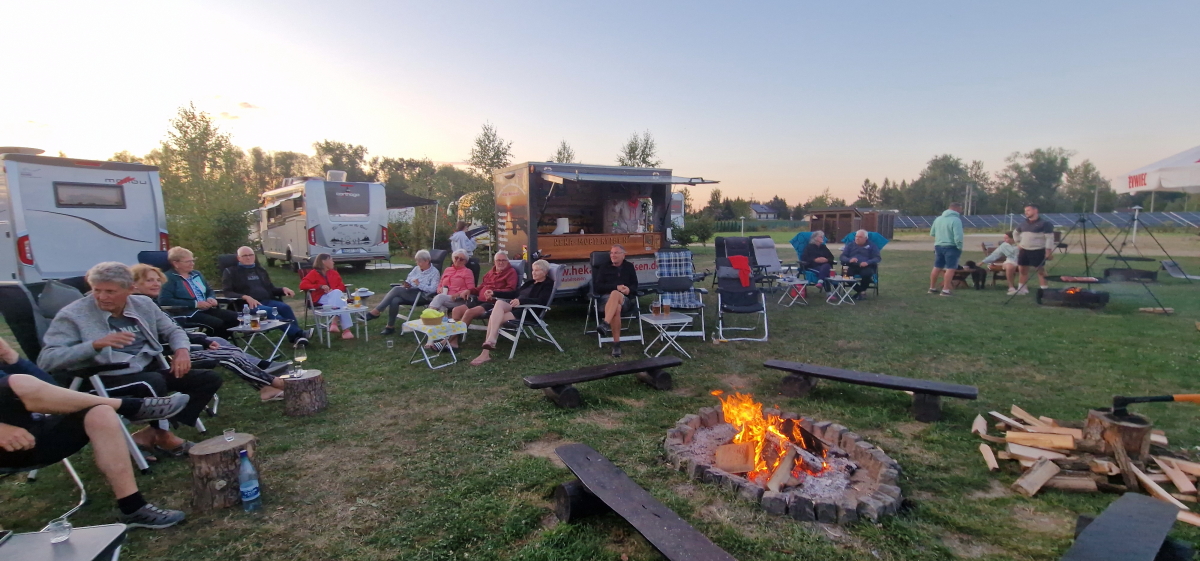 Zur optimalen Vorbereitung auf die Reise wurde von HEKA-Mobilreisen empfohlen, bereits einen Tag früher anzureisen. Treffpunkt auf dem Campingplatz Thräna in Hohendubrau. Der Platz, idyllisch gelegen, mit kleinem Badesee, Restaurant, Tiergehege und der Möglichkeit Bauerngolf zu spielen - wie er nicht schöner sein könnte. Ein wunderbarer Startpunkt für die Reise. So war die Umgebung bestens geeignet für einen Stuhlkreis zur Vorbereitung auf die Reise. Matthias von HEKA-Mobilreisen beschrieb die Route und informierte über die Einreise nach Polen ohne Maut und gab uns Tipps zum Umtausch und Bezahlen in Zloty (günstiger als in €).