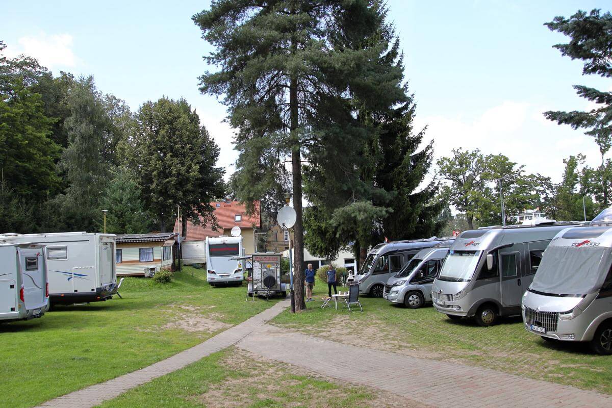 Der Campingplatz zentral in Jelenia Gora ist dank dem Navi unseres vorausfahrenden Liners schnell gefunden. Dort mit Anlauf die steile Anfahrt hinauf und auf der Wiese eingeparkt. Passt.
