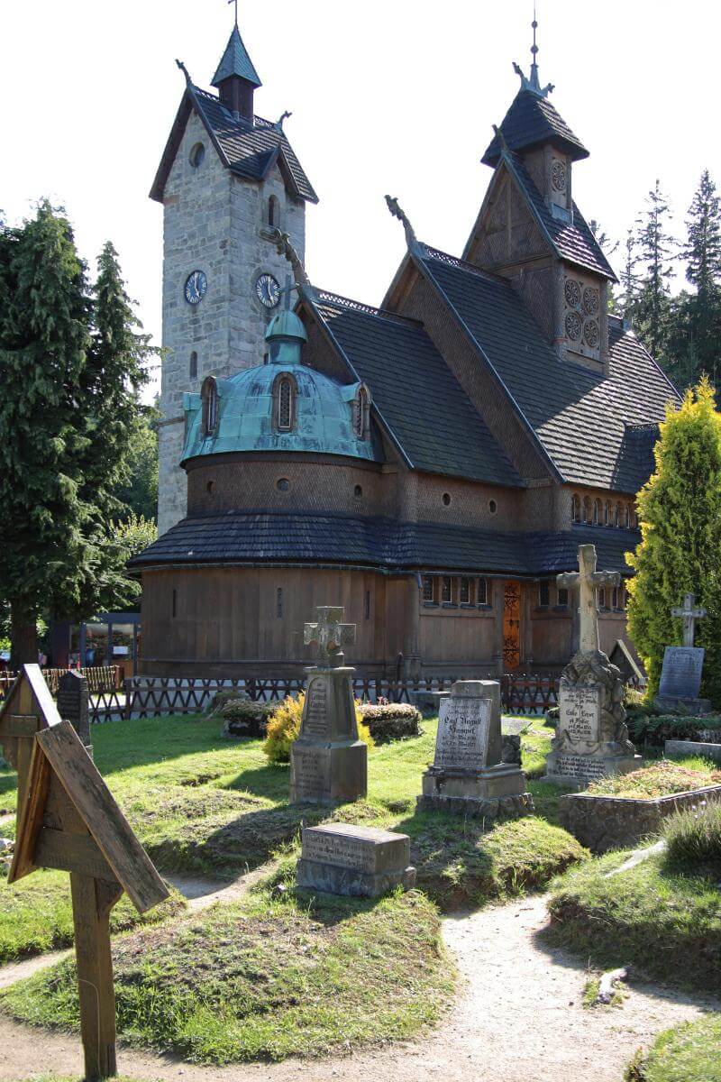 Weiter ging die Tour zur Kirche Wang. Eine Stabholzkirche aus dem 12.Jh. aus Norwegen. Dort sollte sie abgerissen werden und der preußische König Friedrich Wilhelm IV erwarb sie und ließ sie 1842 ins Riesengebirge überführen und originalgetreu aufbauen. Sehenswert!