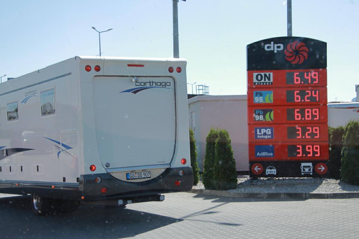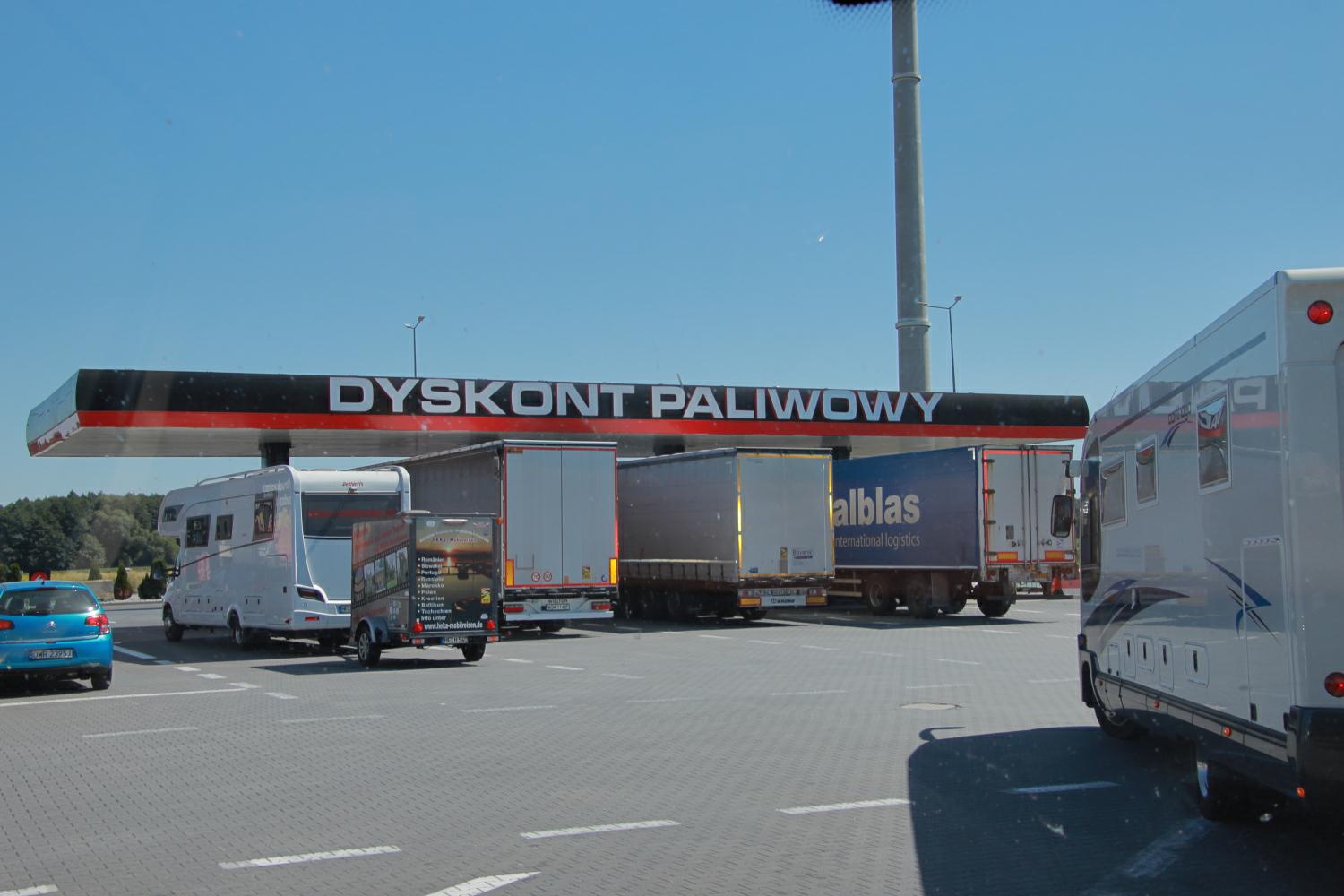 Wir erreichen die von Matthias empfohlene Tankstelle in Katy Wrocąławskie. Eine Mitarbeiterin installiert die eToll App auf unseren Handys. Dies dauerte pro Handy ca. 10 Minuten und Matthias war nach einzelnen Schwierigkeiten mit „Selbstinstallationen“, jetzt sichtlich erleichtert, dass alle ihre eToll App hatten.