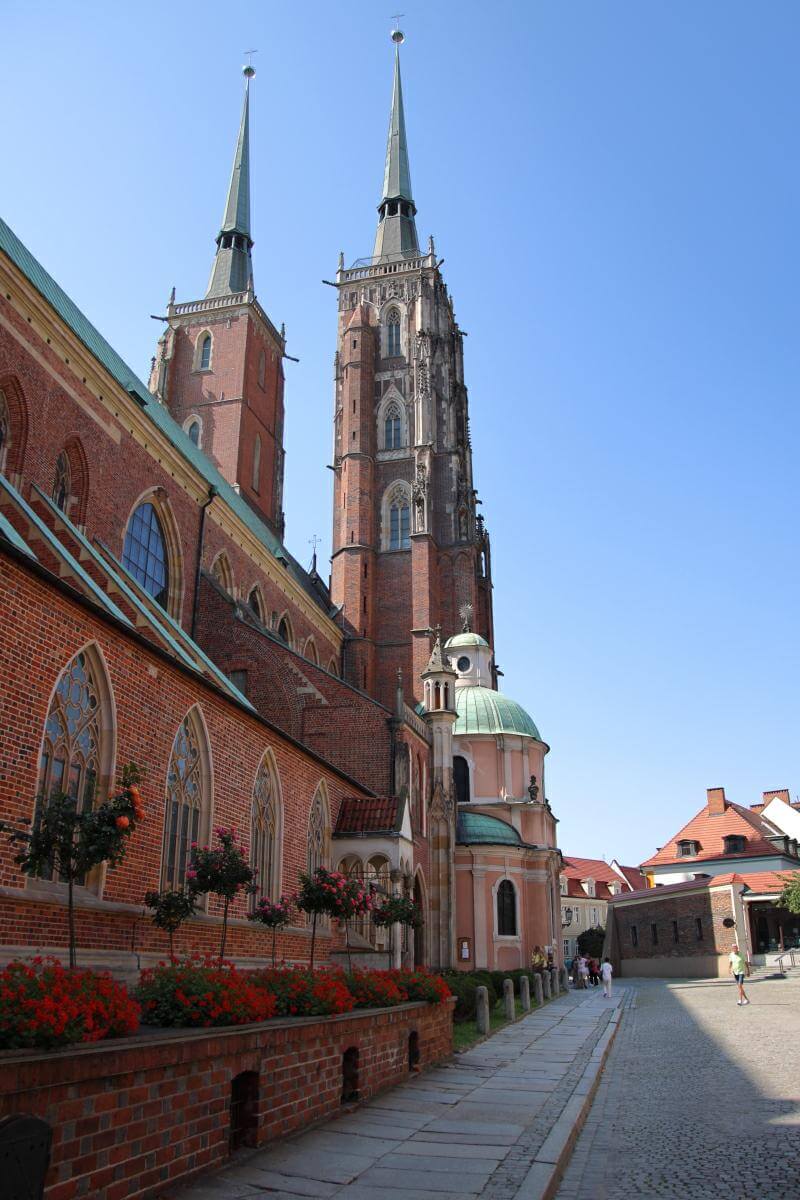 Für heute wurde für uns eine exklusive Stadtführung in Breslau organisiert. Wieder haben wir traumhaftes Wetter. Der Bus holt uns am Campingplatz ab und André stellte sich als Reiseführer vor. Zunächst erläuterte er die Geschichte der Stadt über die Jahrhunderte bis heute. Wobei die jüngere Geschichte, insbesondere der 2. Weltkrieg, unfassbaren Schaden in der Stadt angerichtet hat. Breslau wurde zu 2/3 zerstört. 100tausende Menschen wurden umgesiedelt. Das Wort Vertreibung war unter den damaligen Machtherren nicht erlaubt. Die Stadt wurde im typischen Stil der kommunistischen Machthaber, meist Plattenbauten aufgebaut und erst mit der Wiedervereinigung erlebte die Stadt einen regelrechten Aufschwung. Breslau präsentiert sich heute als moderne europäische Stadt. Unsere Führung startete bei der Jahrhunderthalle. Beeindruckt von den Ausführungen von André schlenderten wir zur Dominsel, der Kathedrale des Heiligen Johannes und weiter zum Marktplatz dem Rynek mit farbenfrohen Häusern, dem Rathaus mit der schrägen Uhr und vielen anderen Sehenswürdigkeiten. André hatte den Ehrgeiz uns so viel wie möglich zu zeigen. Doch der eine oder andere hatte nach dem langen Marsch durch die heiße Stadt eher die schönen Restaurants im Blick. Aber wie Matthias immer sagt: "Ihr bestimmt das Tempo, Euch muss es Spaß machen". Nach viel Geschichte, Kunst und Bauwerken und doch etwas geschwächt durch Hitze und mind. 8.000 Schritten gingen wir zurück zum Marktplatz und wir kehrten in ein typisches Breslauer Restaurant (einheimische Kost) ein. Die Preise absolut fair, im Gegensatz zu anderen Lokalen auf dem Platz.
