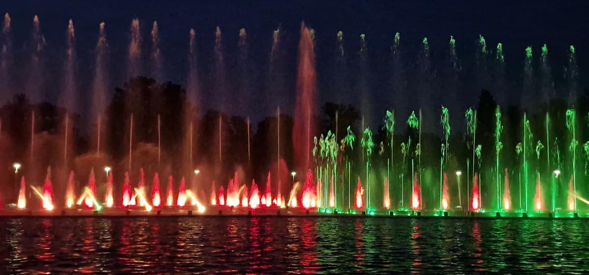 Um 20 Uhr gehen wir alle durch einen wunderschönen Park zu den "Klingenden Fontänen". Der Multimedia-Brunnen Wrocław ist der größte in Polen und einer der größten in Europa. Die Anlage nimmt eine Fläche von fast 1 Hektar ein, auf deren Boden Lichtpunkte, 300 Wasser- und Lichtdüsen 800 LED-Scheinwerfer und 3 Feuerdüsen angebracht sind. Ein beeindruckendes Spektakel von Wasserfontänen, begleitet von moderner und klassischer Musik.