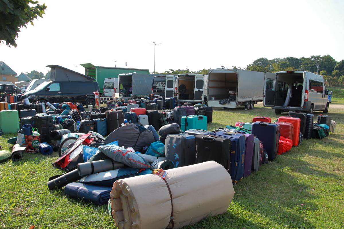 Neben unseren Wohnmobilen lagerte das Gepäck der Pilger um abends auf die bereitstehenden Busse verteilt zu werden. Wie hätten sie das bei Regen gemacht?