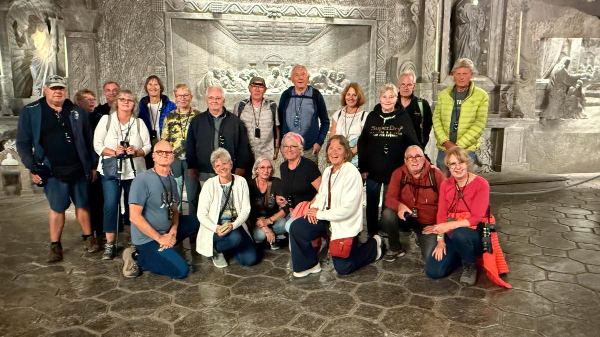 Heute fuhren wir mit dem Bus zu dem berühmten Salzbergwerk Wieliczka. Es  ist eines der ältesten und bekanntesten Salzbergwerke der Welt. Zusammen mit dem Salzbergwerk Bochnia und dem Salzgrafenschloss Wieliczka bildet es das UNESCO Weltkulturerbe Königliche Salzbergwerke. Unsere Reiseführerin erklärte uns zunächst die jahrhunderte alte Geschichte des Salzabbaus. Der anschließende Rundgang führt über viele Stufen tief bis 135 Meter unter die Erde, durch lange Gänge, in denen noch heute die Salzstrukturen an den Wänden glänzen. Lecken war erlaubt - aber wir hatten das Gefühl, das wollte keiner probieren.