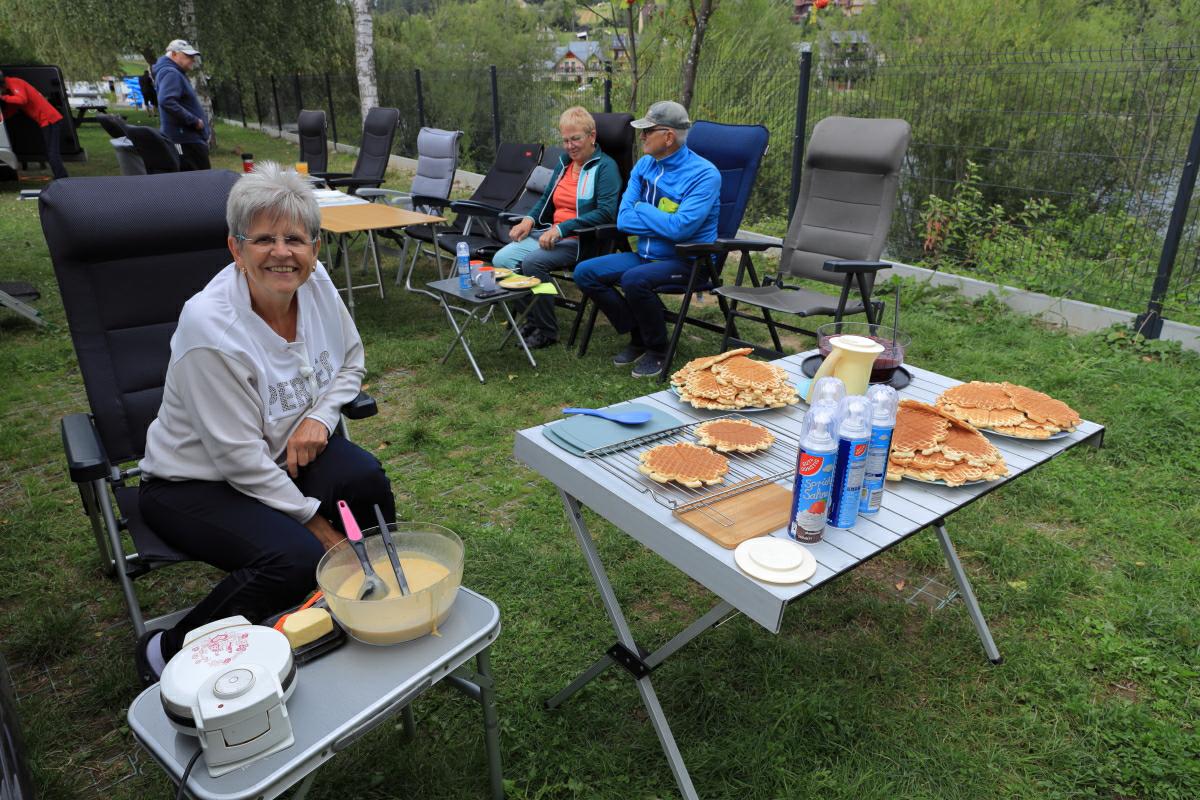 Doris hatte angekündigt, für uns alle mindestens je 2 Waffeln zu backen. Dafür saß sie über zwei Stunden am Waffeleisen und hatte 4,2 Liter Teig angerührt. Alle waren  begeistert, denn sie schmeckten hervorragend.