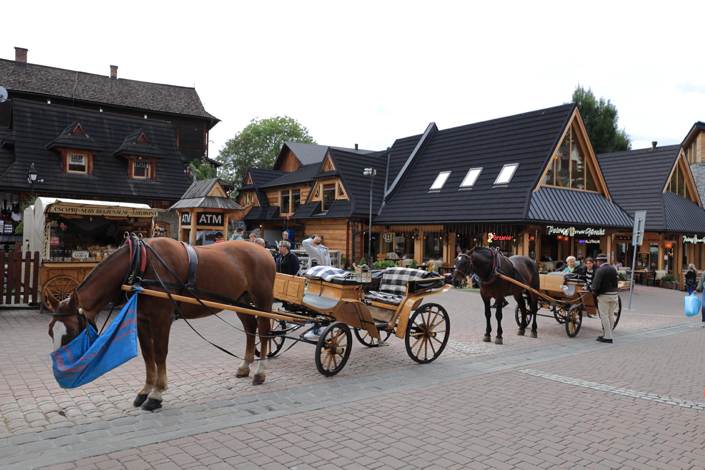 47 km in 1,5 Stunden benötigten wir nach Zakopane, dem größten Wintersportort Polens. Wir wurden mit Pferdekutschen abgeholt und lernten auf unserer Fahrt Teile der Altstadt mit den wunderschönen Holzhäusern kennen