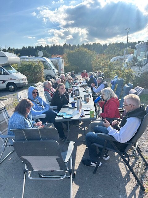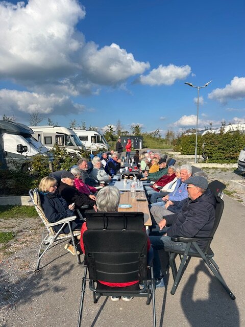 Der Tag begann erneut mit frisch gelieferten Brötchen, die direkt an die jeweiligen Wohnmobile gebracht wurden, sodass sich alle Teilnehmer stärken konnten.