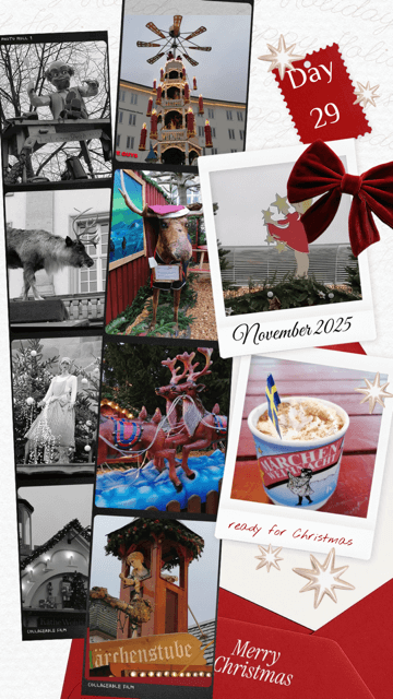 Ein Höhepunkt war unser gemeinsamer Ausflug am Samstag zum Märchenweihnachtsmarkt in Kassel. Die liebevoll geschmückten Buden, der Duft von Glühwein, gebrannten Mandeln und herzhaften Leckereien begleiteten uns von Anfang an. Besonders beeindruckend war der fliegende Weihnachtsmann, der hoch über dem Markt seine Runden drehte und mit seiner Show Kinder wie Erwachsene gleichermaßen begeisterte. Die festliche Beleuchtung, die Musik und die winterliche Atmosphäre machten den Besuch zu einem wunderbaren Erlebnis. Ob Glühwein oder Feuerzangenbowle, für jeden war etwas dabei.